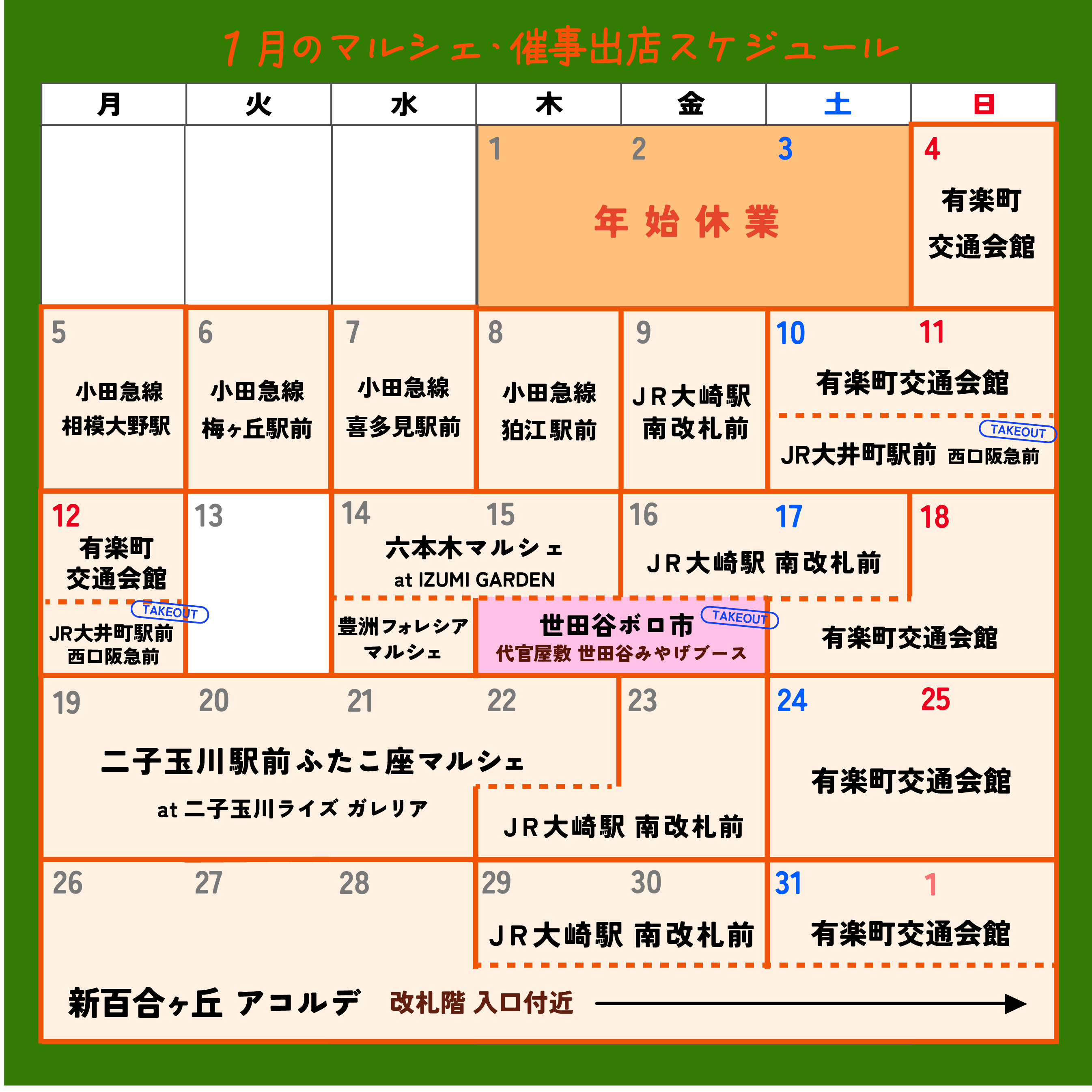 1月マルシェ・催事予定です